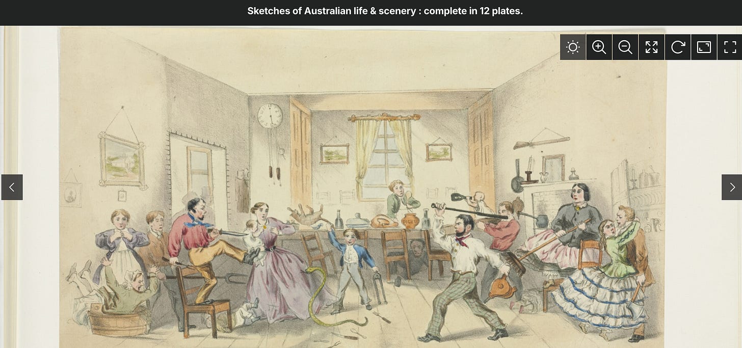 Image: Sketches from Australian Life and Scenery, SLNSW. Shows a gold-rush pub.